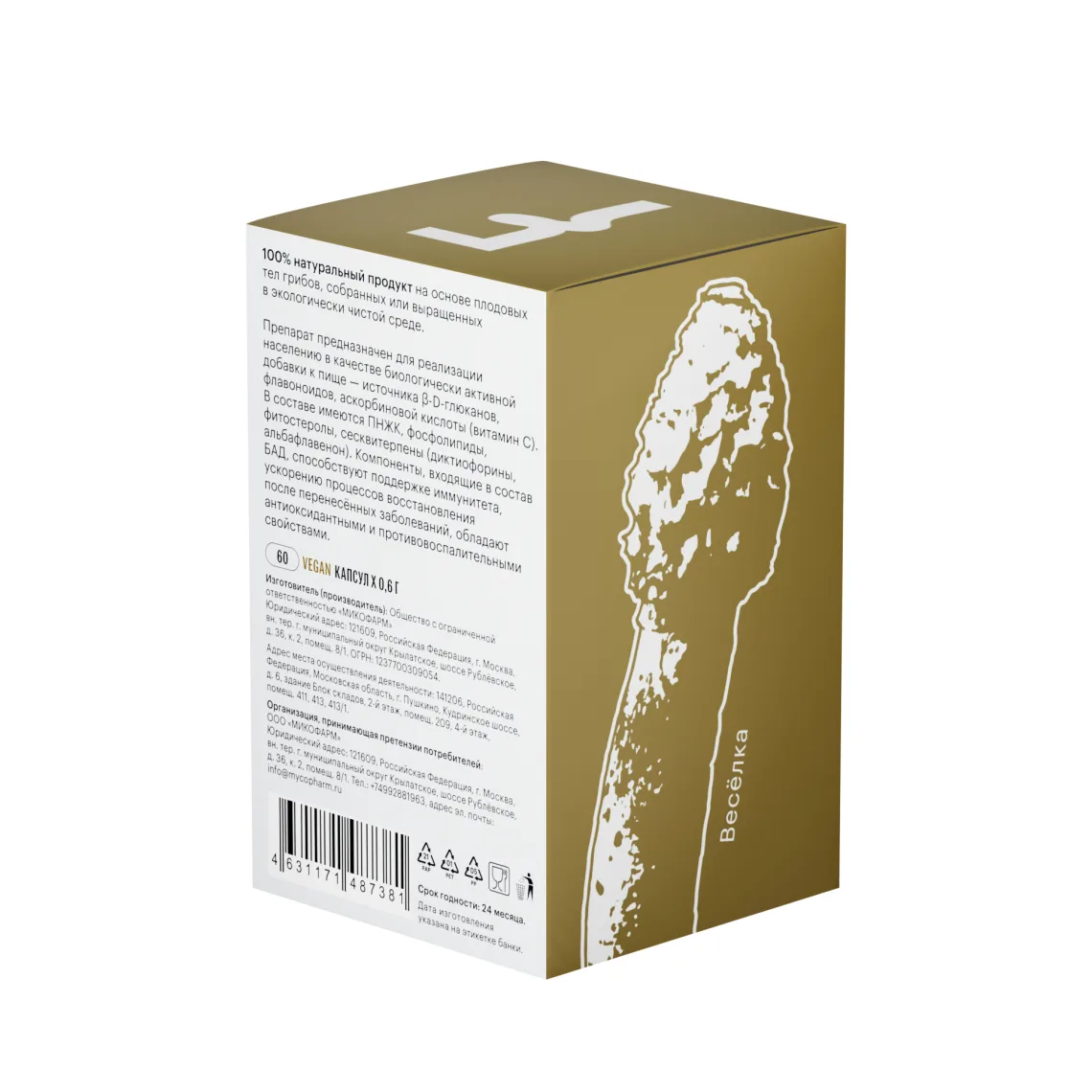 Веселка обыкновенная (Phallus impudicus) — гриб, веками использовавшийся в восточной и европейской традиционной медицине как противоопухолевое и противовоспалительное средство. Мощное иммуномодулирующее действие веселки может способствовать снижению роста новообразований, а ее антиоксидантные свойства помогают предотвратить их развитие и борются с воспалением, — в том числе, воспалением слизистых оболочек, одним из факторов, провоцирующих такие заболевания как стоматит, цистит, гастрит и язвенная болезнь желудка.